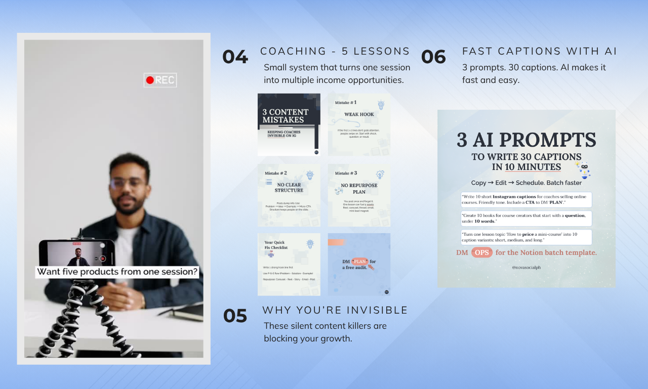 • Visual content and branding in Canva. I build on-brand templates, thumbnails, and repurposed assets that scale.