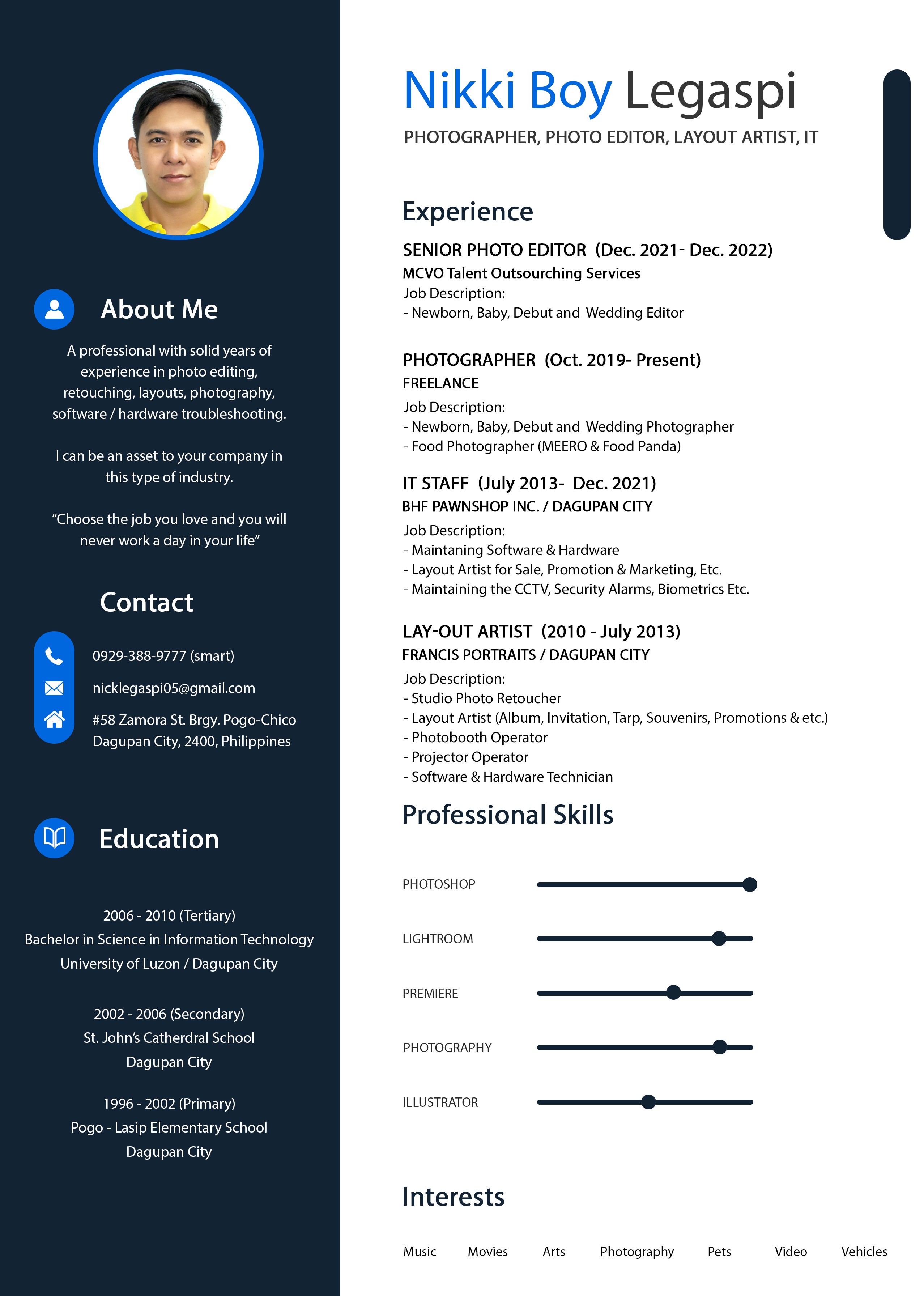 Hi if you’re looking for the right person for this job, You should try me. I’m a professional with solid years of experience in photo editing. I can be an asset to your company and share my experience in editing as well. I’m also a photographer myself so this job would be perfect for my qualities and knowledge.